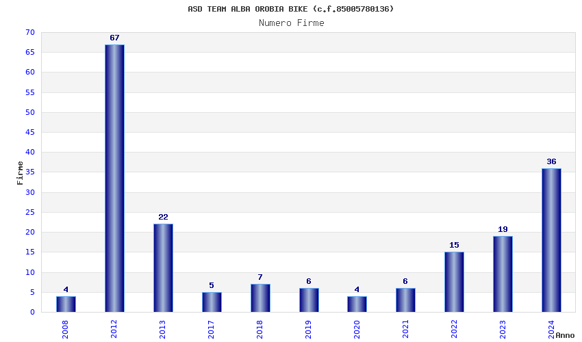 | Anno | Firme | Importi | Media | Naz. | Reg. | Prov. | Comu. |