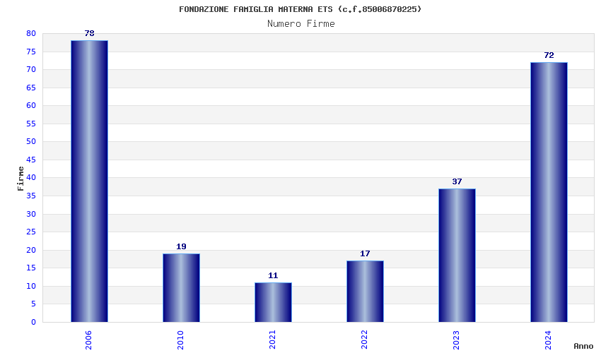 | Anno | Firme | Importi | Media | Naz. | Reg. | Prov. | Comu. |