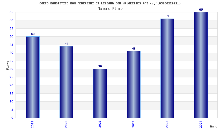 | Anno | Firme | Importi | Media | Naz. | Reg. | Prov. | Comu. |