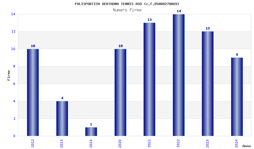 | Anno | Firme | Importi | Media | Naz. | Reg. | Prov. | Comu. |