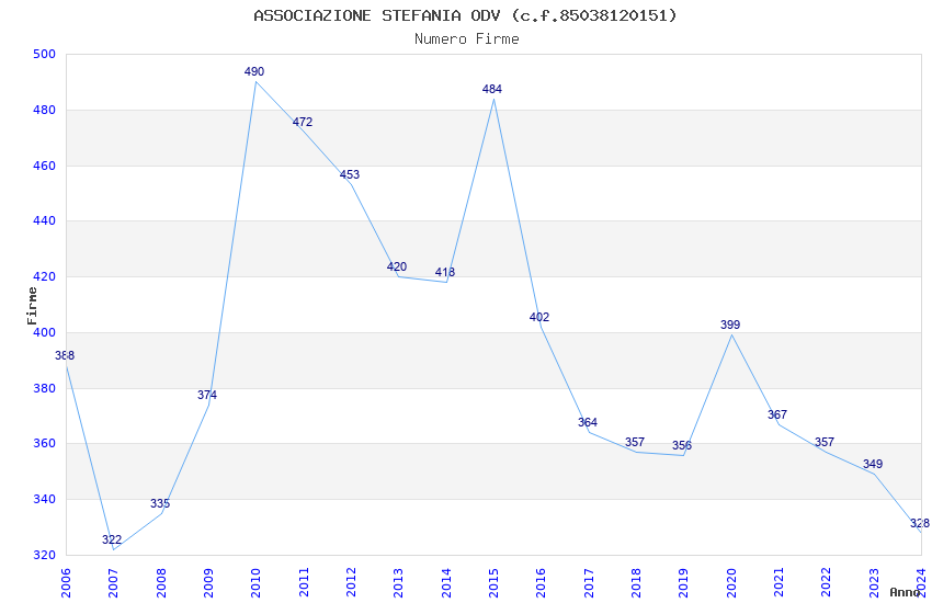| Anno | Firme | Importi | Media | Naz. | Reg. | Prov. | Comu. |