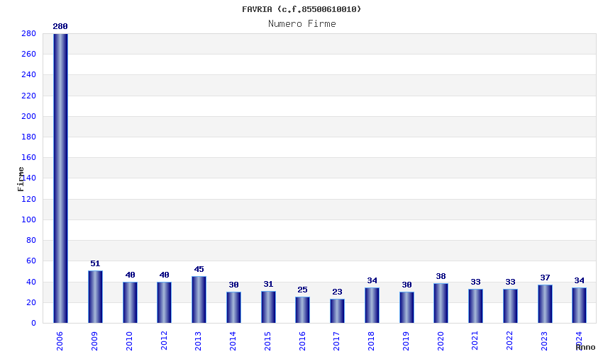 Anno Firme Importi Media Naz. Reg. Prov. Comu.
