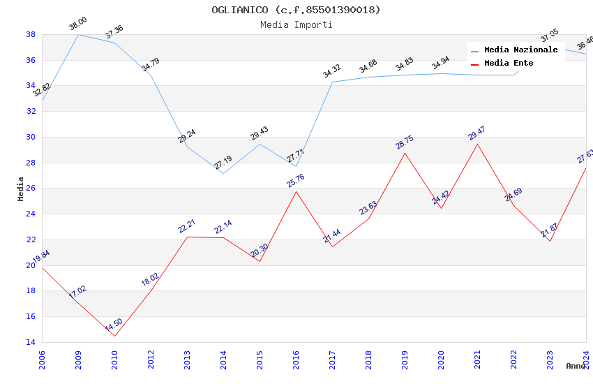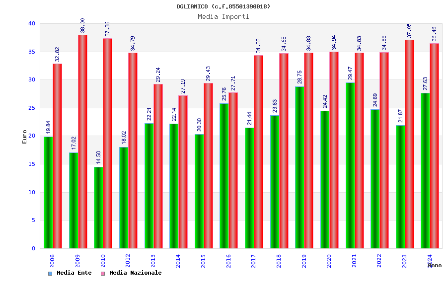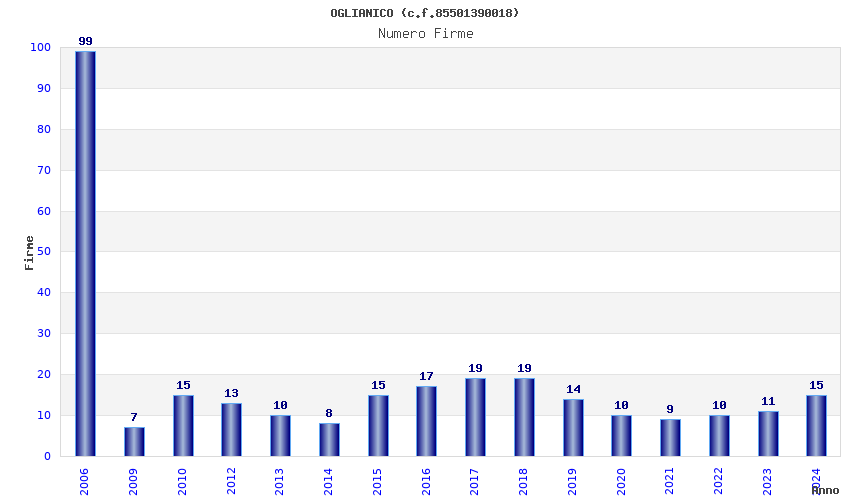 | Anno | Firme | Importi | Media | Naz. | Reg. | Prov. | Comu. |