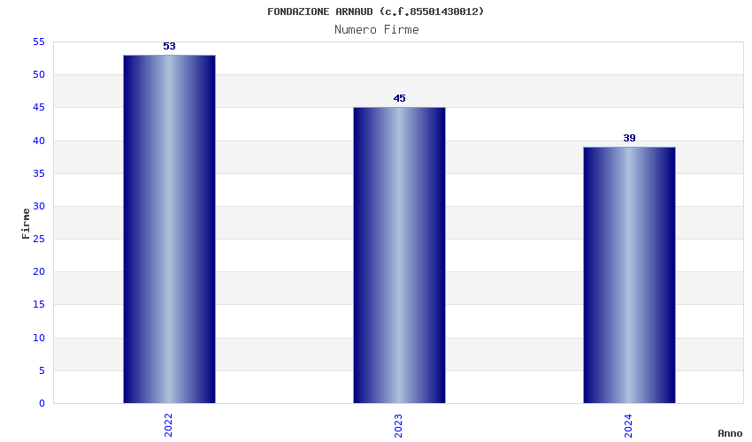 | Anno | Firme | Importi | Media | Naz. | Reg. | Prov. | Comu. |