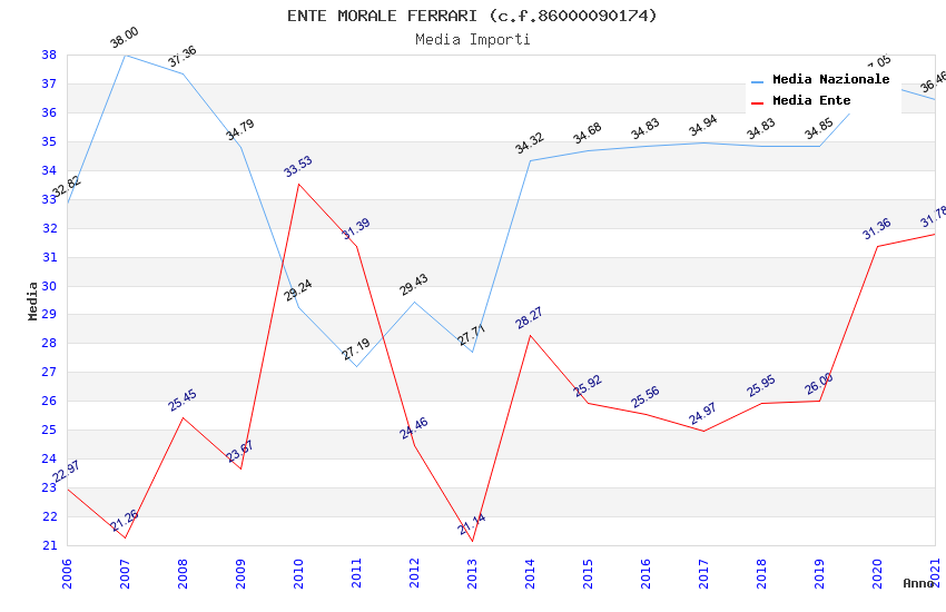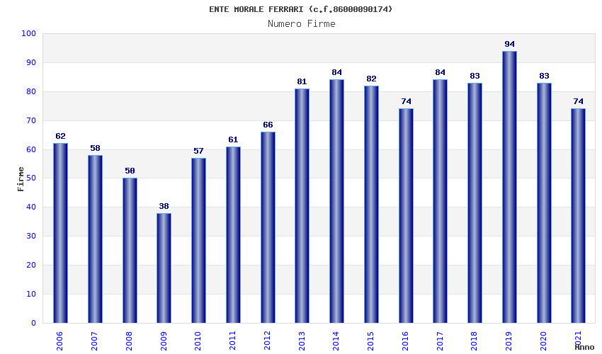 | Anno | Firme | Importi | Media | Naz. | Reg. | Prov. | Comu. |