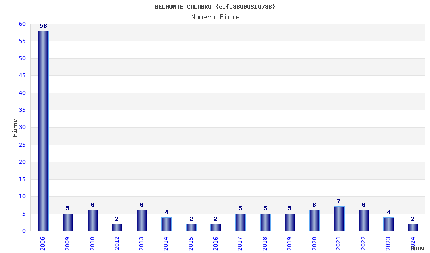 | Anno | Firme | Importi | Media | Naz. | Reg. | Prov. | Comu. |