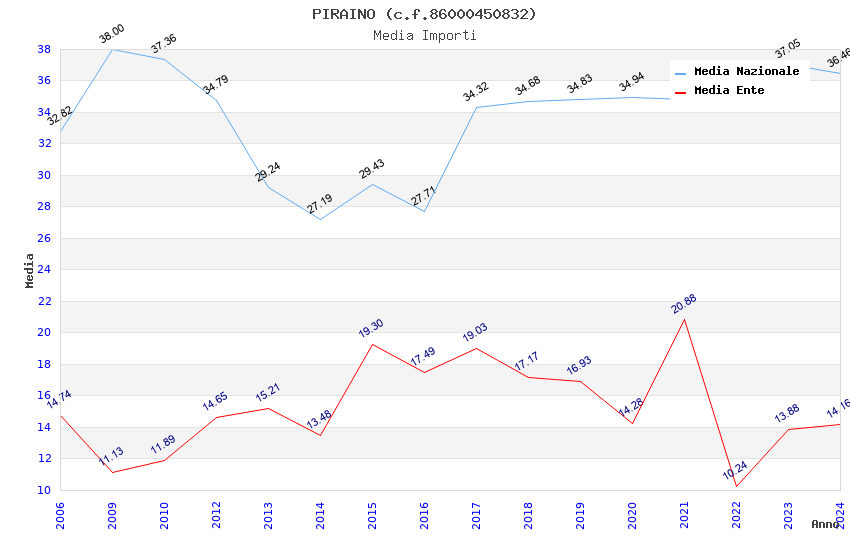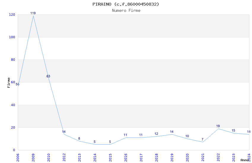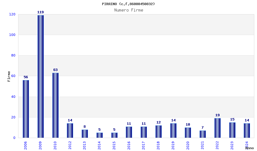 | Anno | Firme | Importi | Media | Naz. | Reg. | Prov. | Comu. |