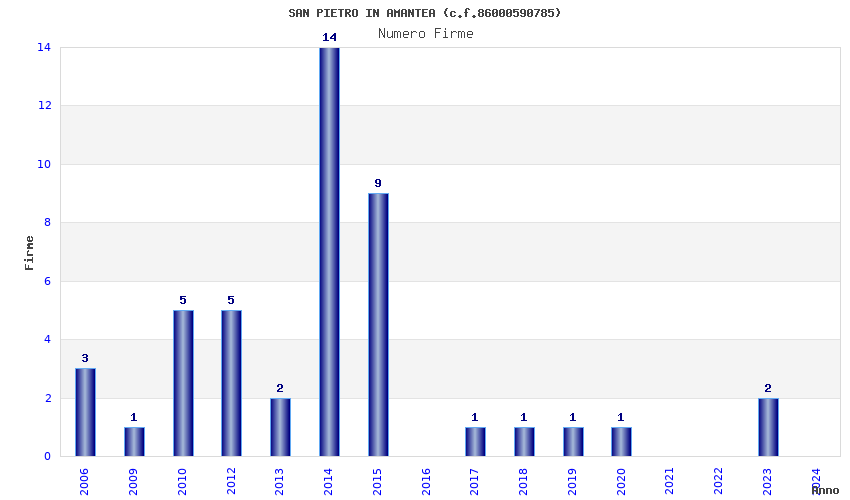 | Anno | Firme | Importi | Media | Naz. | Reg. | Prov. | Comu. |