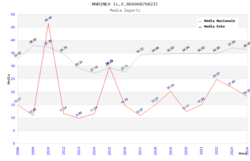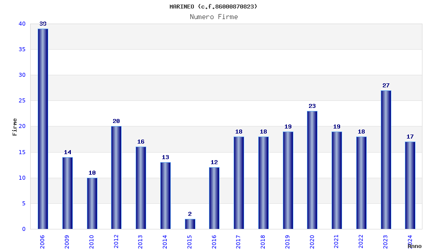 | Anno | Firme | Importi | Media | Naz. | Reg. | Prov. | Comu. |