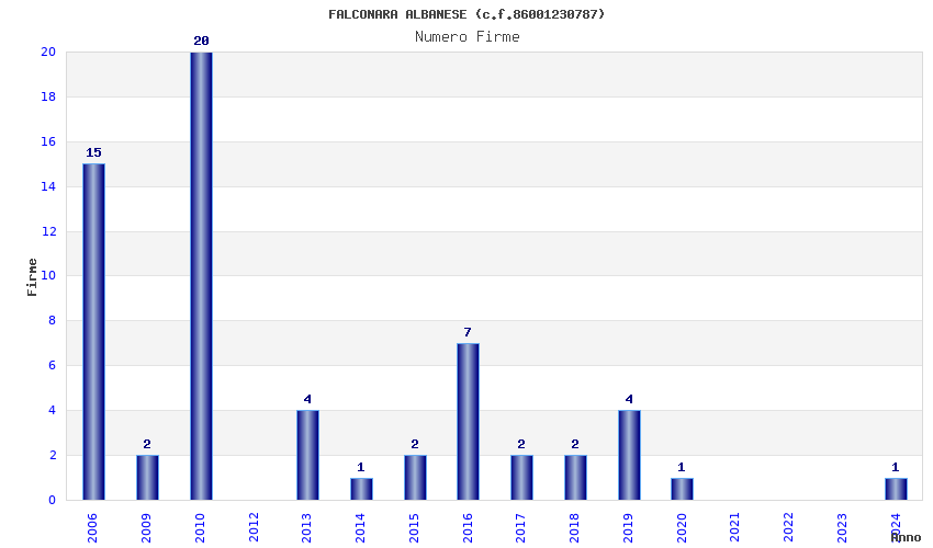 | Anno | Firme | Importi | Media | Naz. | Reg. | Prov. | Comu. |