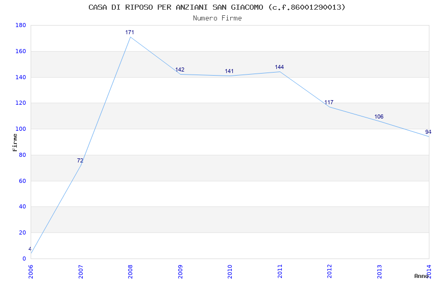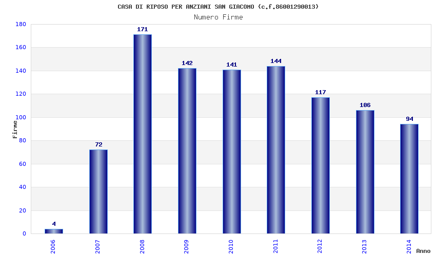 | Anno | Firme | Importi | Media | Naz. | Reg. | Prov. | Comu. |