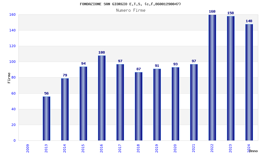 | Anno | Firme | Importi | Media | Naz. | Reg. | Prov. | Comu. |