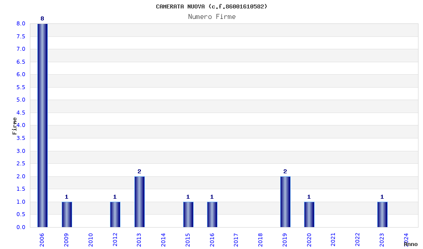 | Anno | Firme | Importi | Media | Naz. | Reg. | Prov. | Comu. |