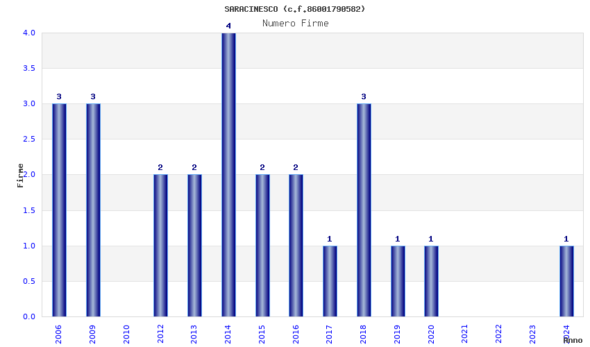 | Anno | Firme | Importi | Media | Naz. | Reg. | Prov. | Comu. |