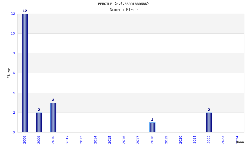 | Anno | Firme | Importi | Media | Naz. | Reg. | Prov. | Comu. |