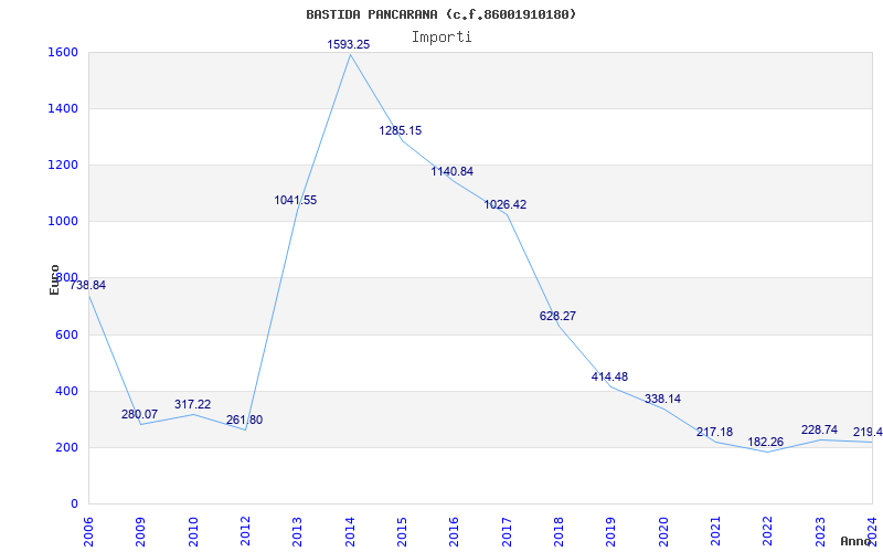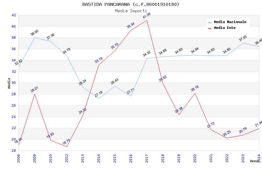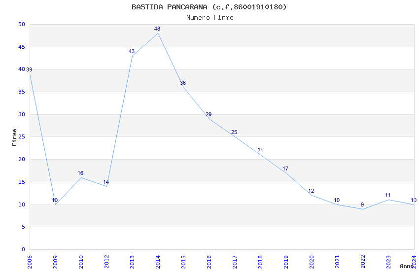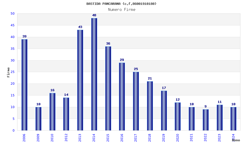 | Anno | Firme | Importi | Media | Naz. | Reg. | Prov. | Comu. |