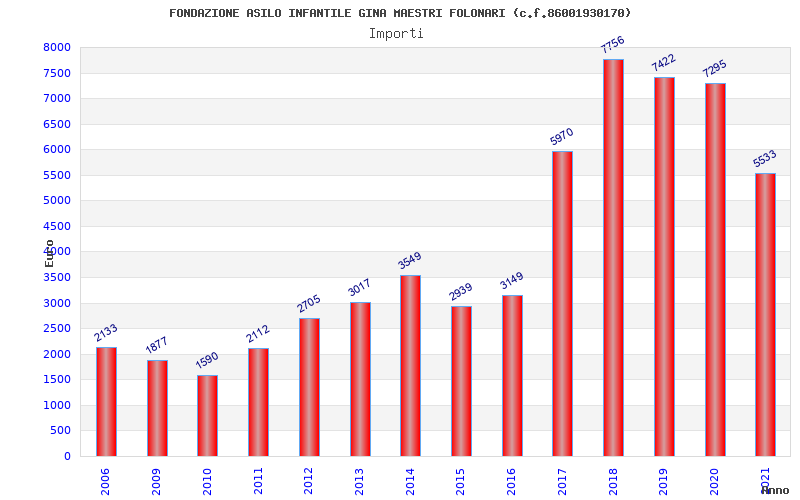 | Anno | Firme | Importi | Media | Naz. | Reg. | Prov. | Comu. |