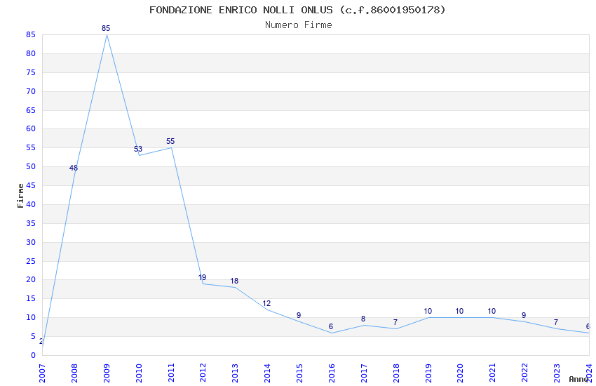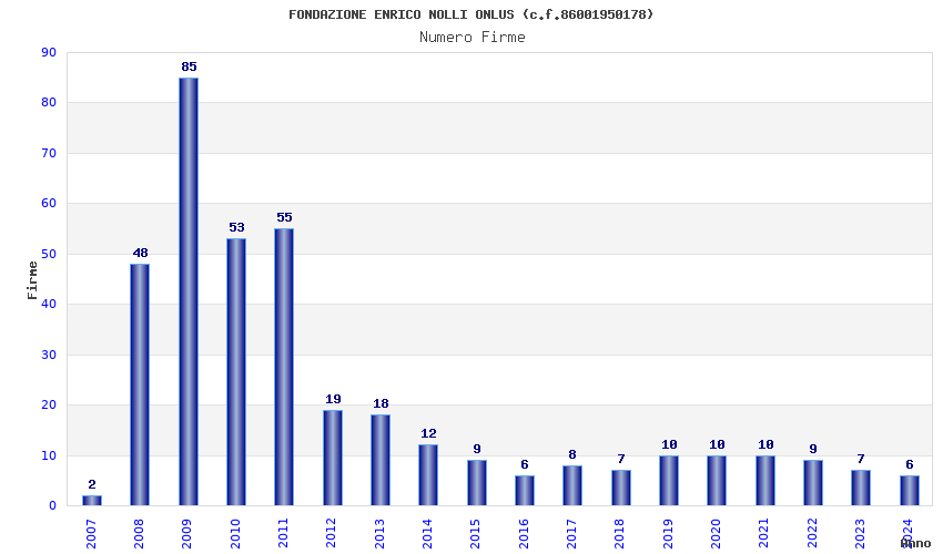 | Anno | Firme | Importi | Media | Naz. | Reg. | Prov. | Comu. |