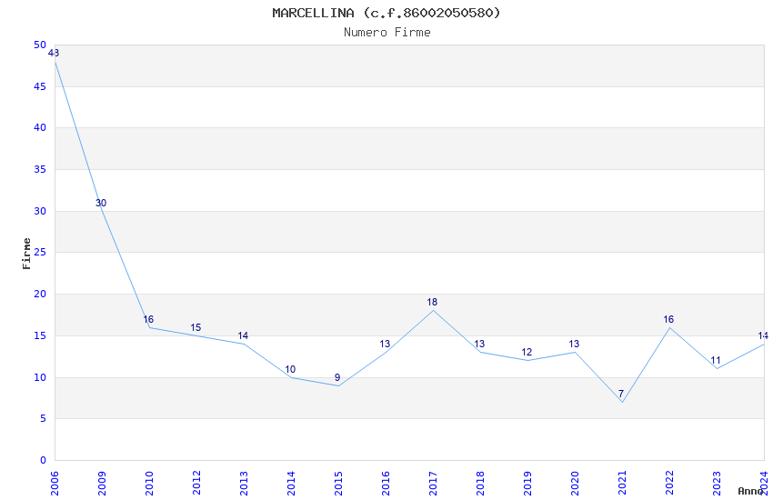 | 2013 | 14 | 206,93 | 14,78 | 41.627 | 3.463 | 2.728 | 1 |