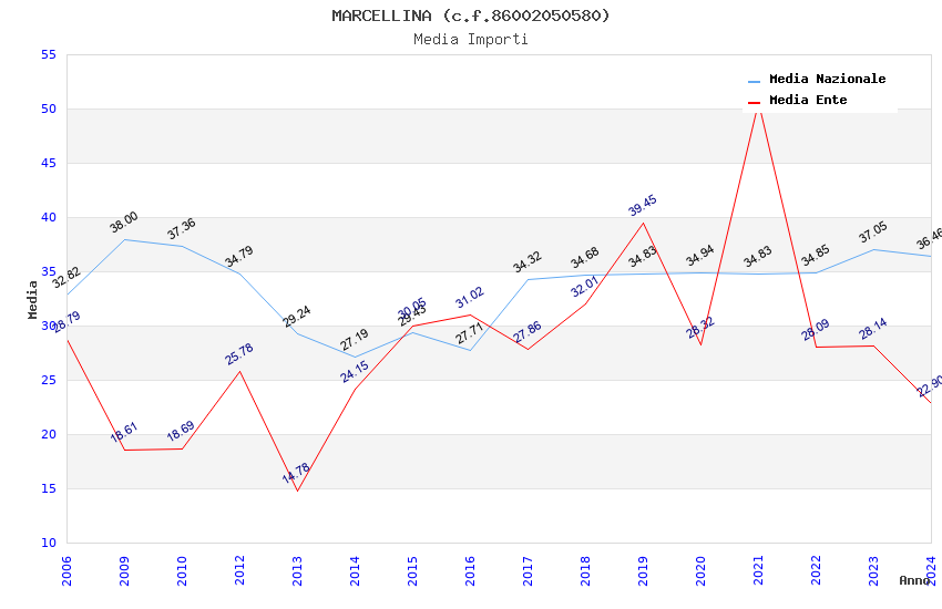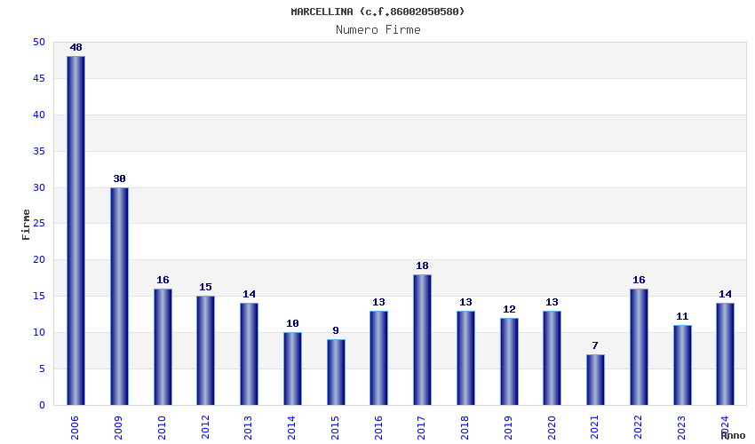 | Anno | Firme | Importi | Media | Naz. | Reg. | Prov. | Comu. |