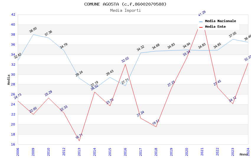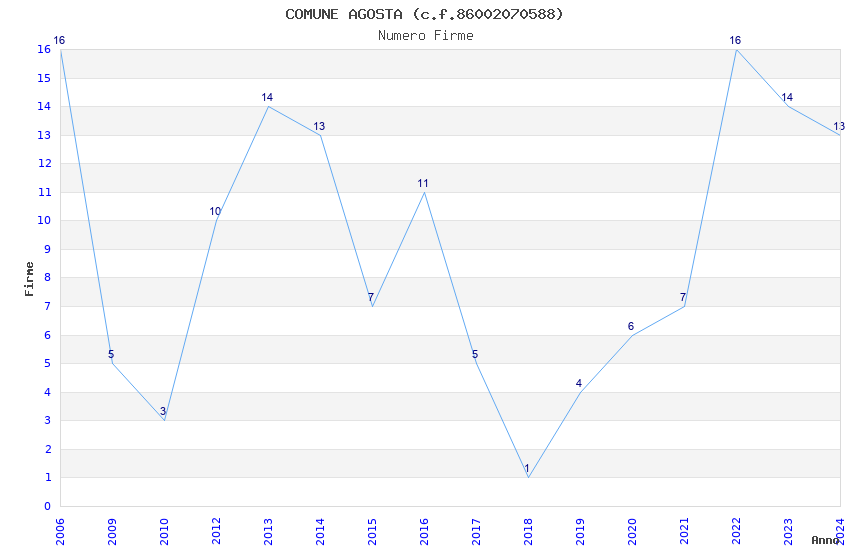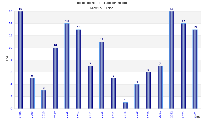 | Anno | Firme | Importi | Media | Naz. | Reg. | Prov. | Comu. |