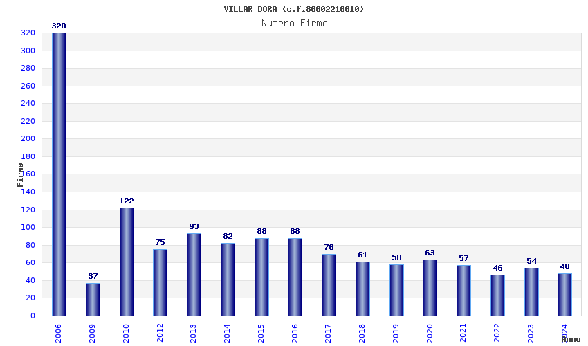 | Anno | Firme | Importi | Media | Naz. | Reg. | Prov. | Comu. |