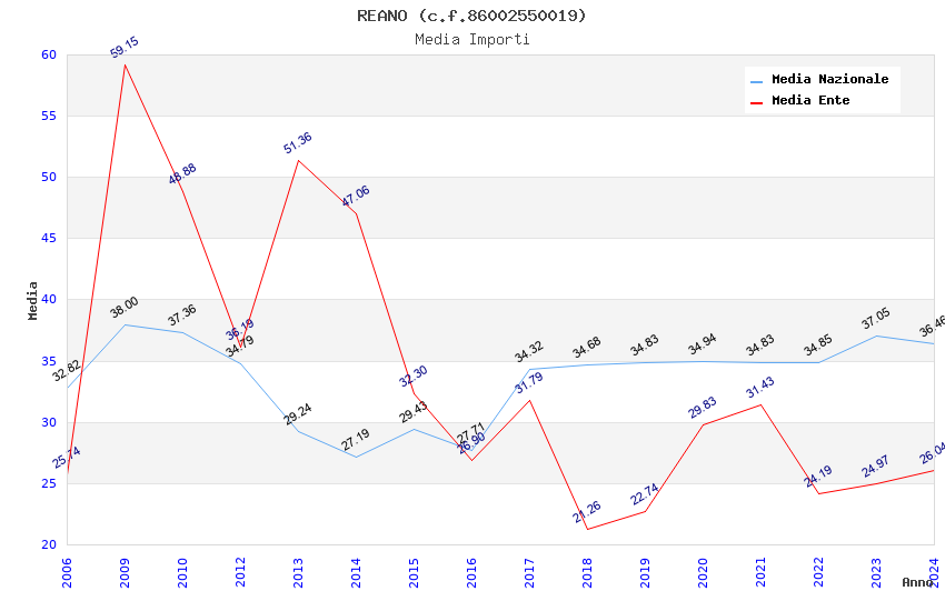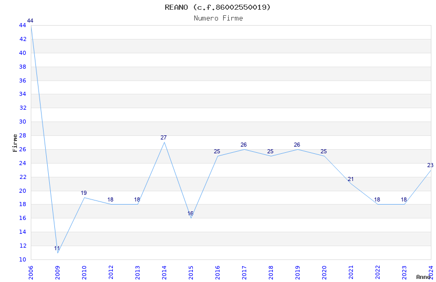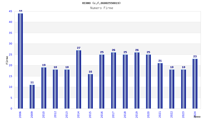 | Anno | Firme | Importi | Media | Naz. | Reg. | Prov. | Comu. |
