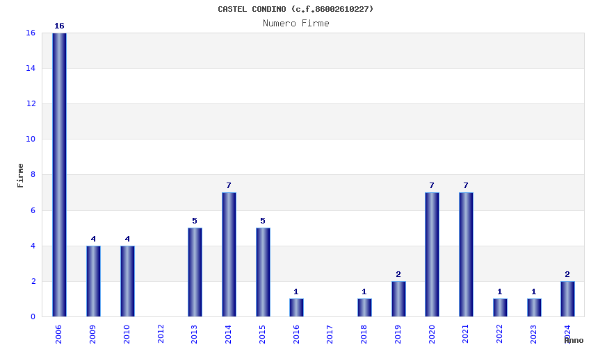 | Anno | Firme | Importi | Media | Naz. | Reg. | Prov. | Comu. |