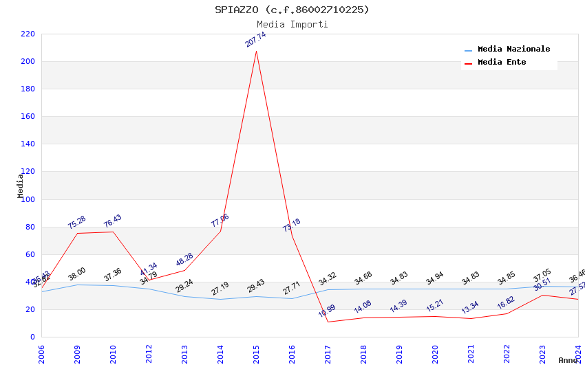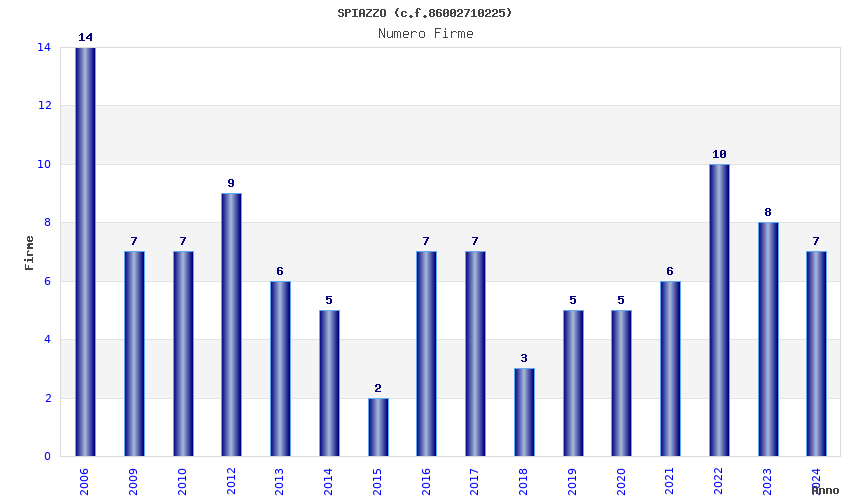 | Anno | Firme | Importi | Media | Naz. | Reg. | Prov. | Comu. |