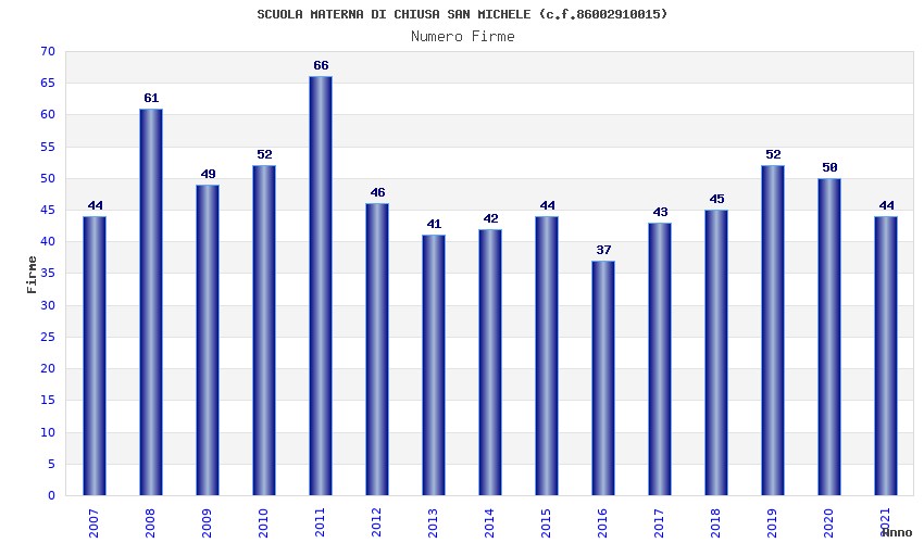 | Anno | Firme | Importi | Media | Naz. | Reg. | Prov. | Comu. |