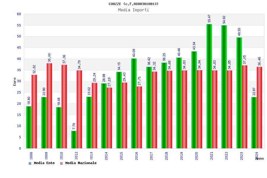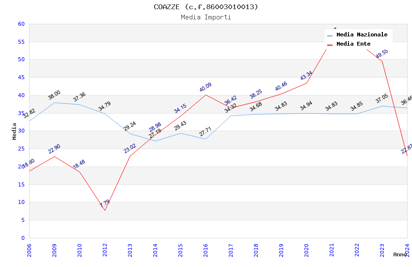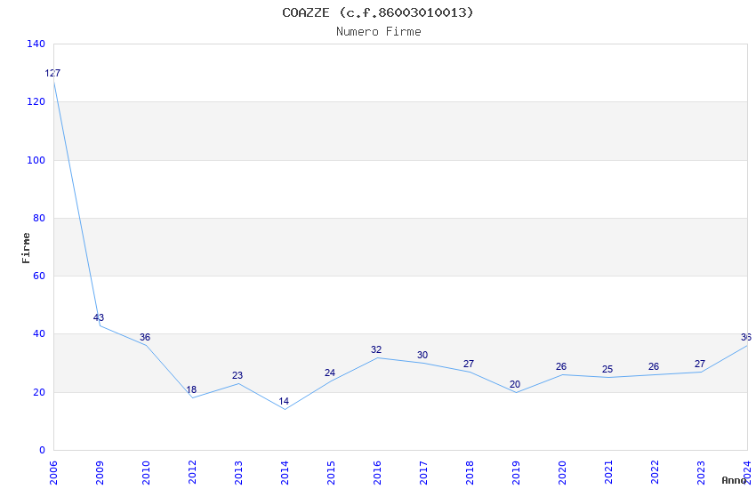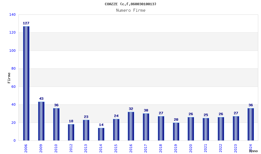 | Anno | Firme | Importi | Media | Naz. | Reg. | Prov. | Comu. |