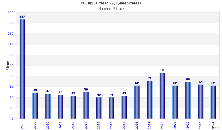 Anno Firme Importi Media Naz. Reg. Prov. Comu.