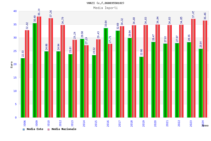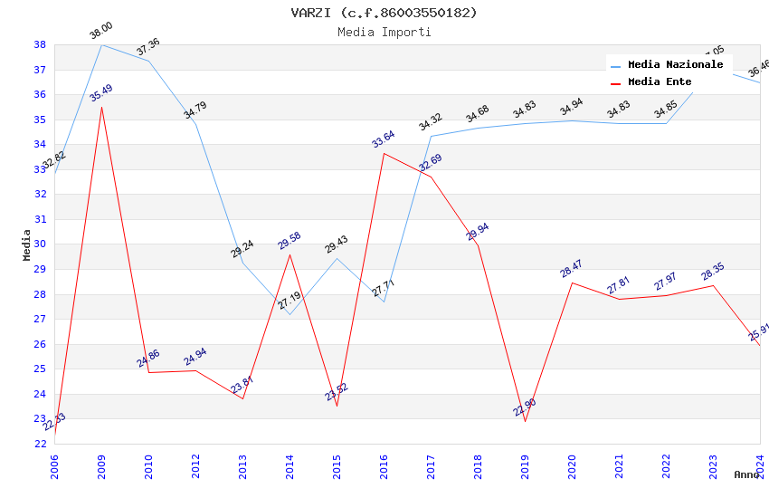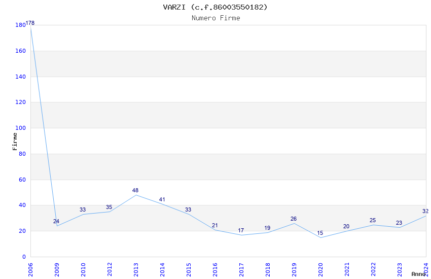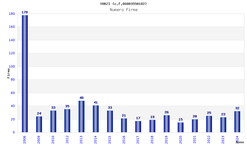 | Anno | Firme | Importi | Media | Naz. | Reg. | Prov. | Comu. |