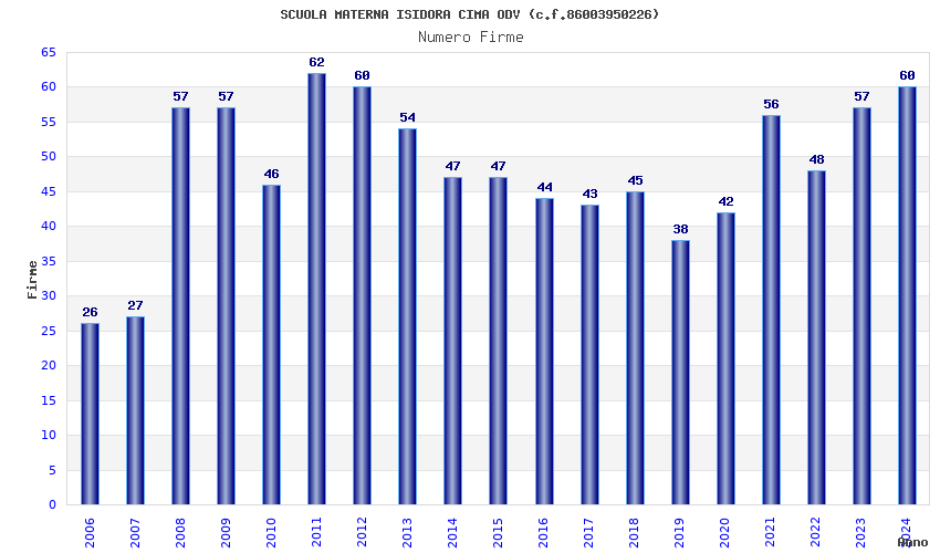 | Anno | Firme | Importi | Media | Naz. | Reg. | Prov. | Comu. |