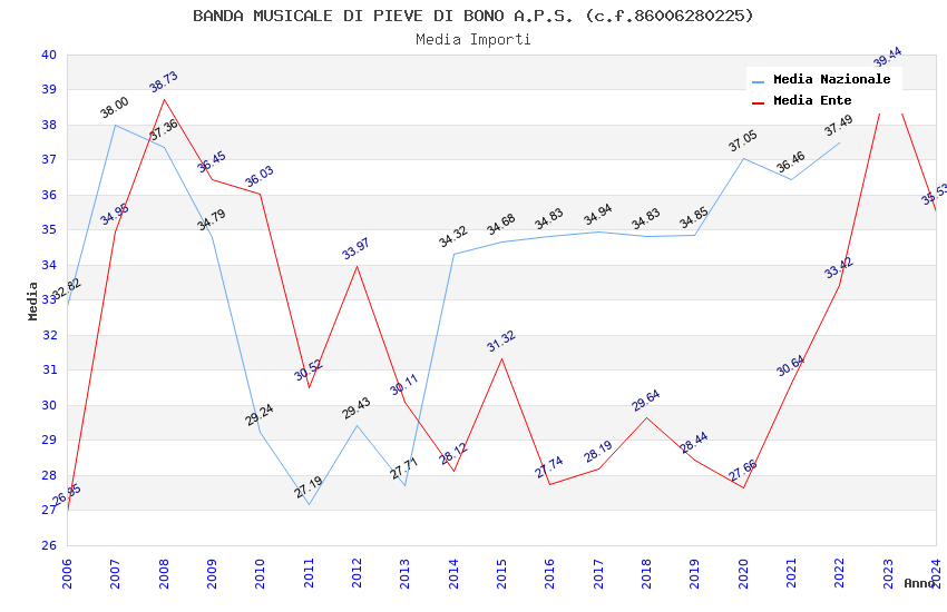 | Anno | Firme | Importi | Media | Naz. | Reg. | Prov. | Comu. |