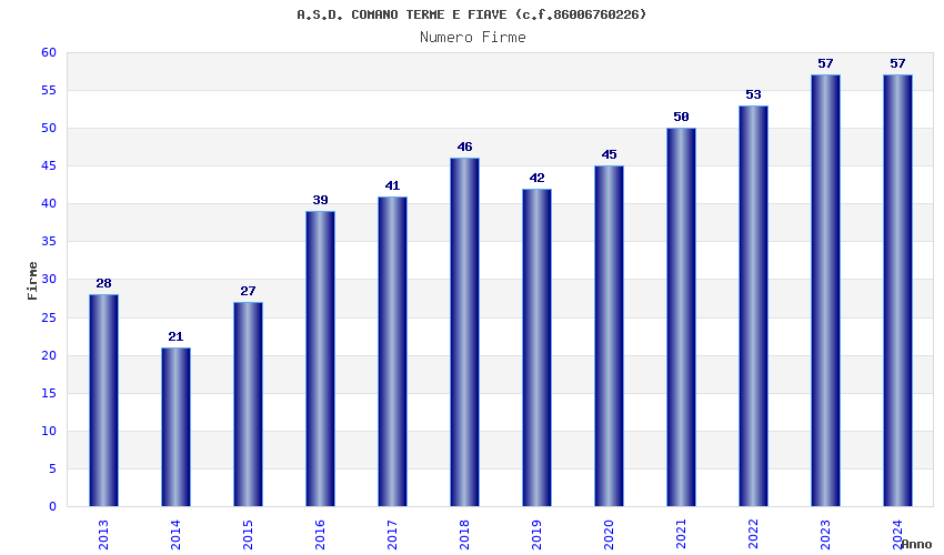 | Anno | Firme | Importi | Media | Naz. | Reg. | Prov. | Comu. |