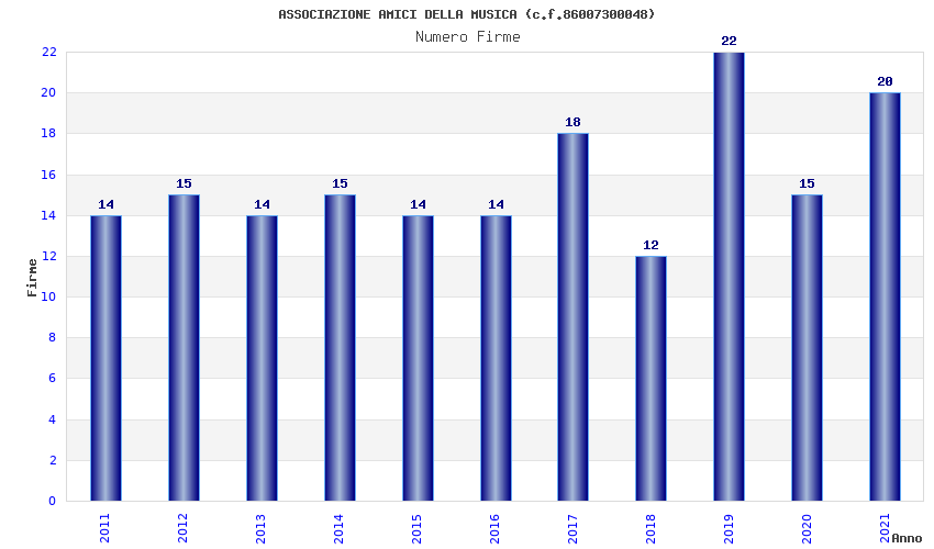 | Anno | Firme | Importi | Media | Naz. | Reg. | Prov. | Comu. |