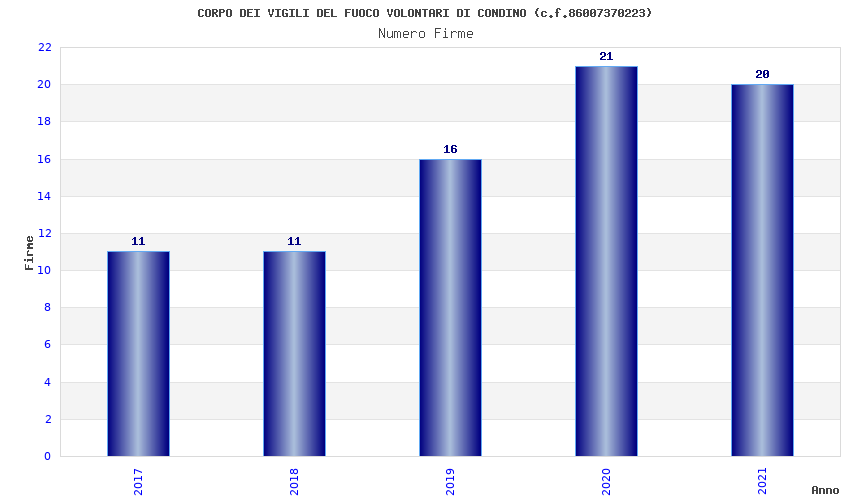 | Anno | Firme | Importi | Media | Naz. | Reg. | Prov. | Comu. |