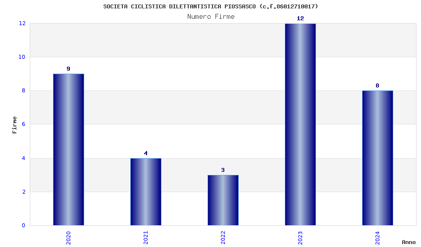 | Anno | Firme | Importi | Media | Naz. | Reg. | Prov. | Comu. |