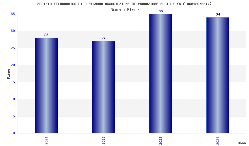 | Anno | Firme | Importi | Media | Naz. | Reg. | Prov. | Comu. |