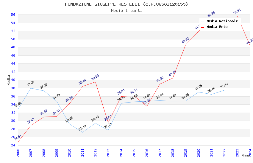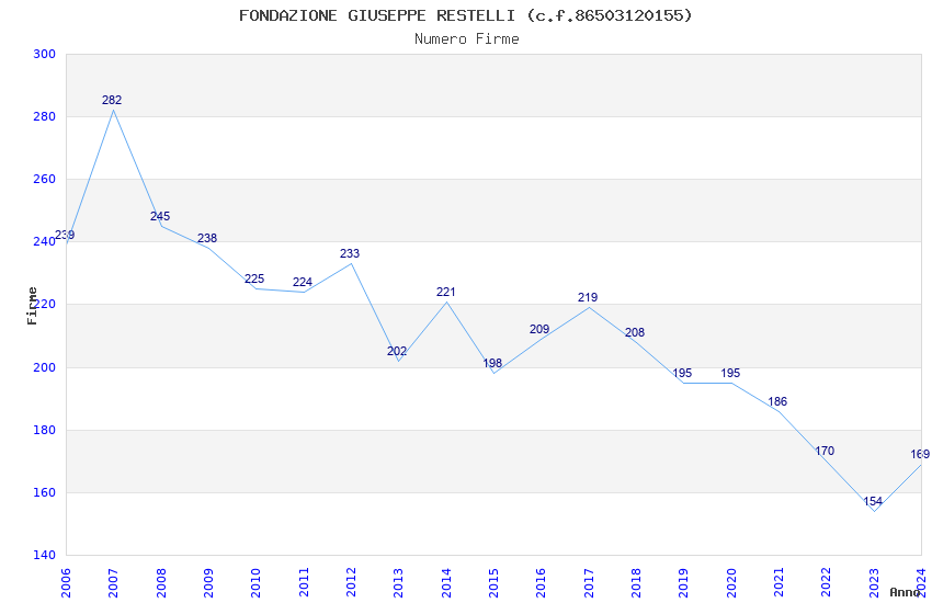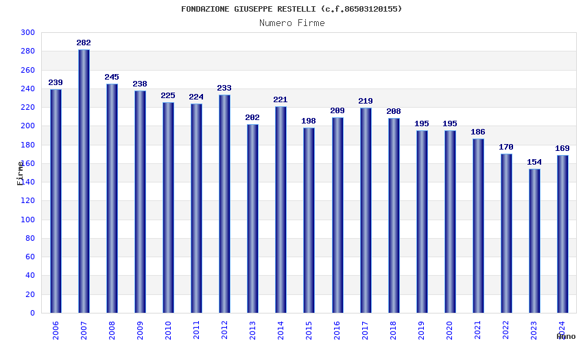 | Anno | Firme | Importi | Media | Naz. | Reg. | Prov. | Comu. |