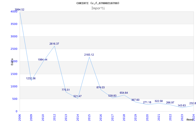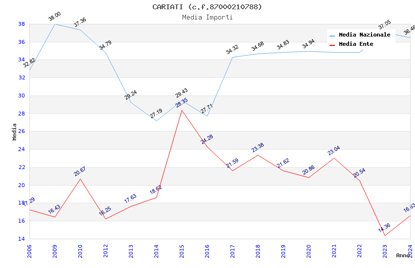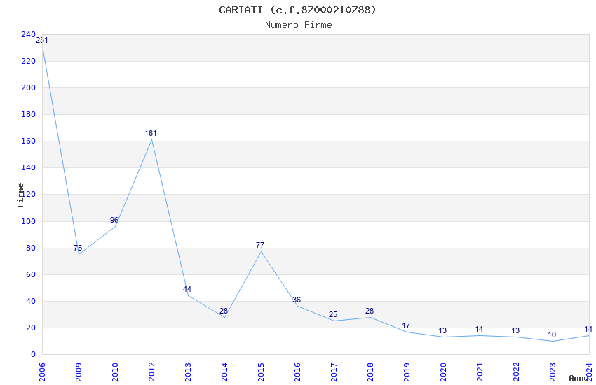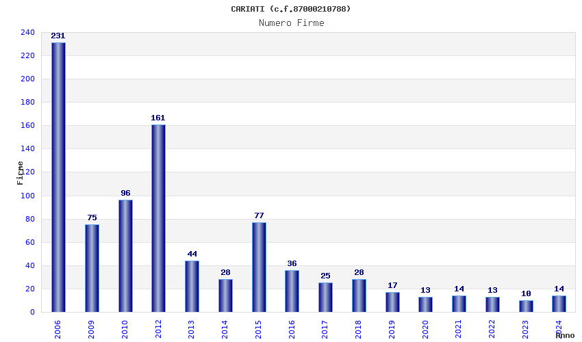 | Anno | Firme | Importi | Media | Naz. | Reg. | Prov. | Comu. |
