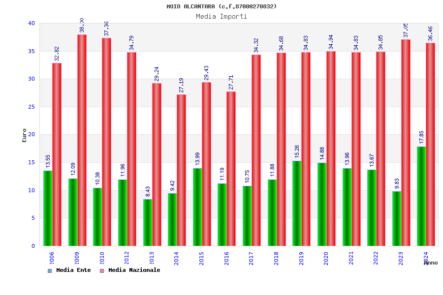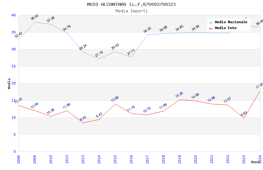 | Anno | Firme | Importi | Media | Naz. | Reg. | Prov. | Comu. |