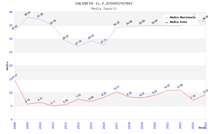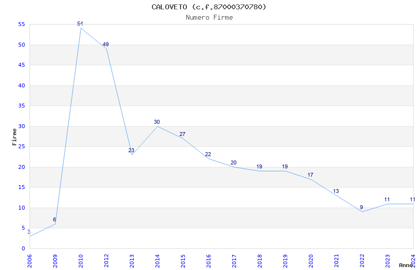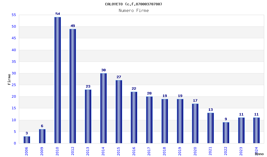 | Anno | Firme | Importi | Media | Naz. | Reg. | Prov. | Comu. |