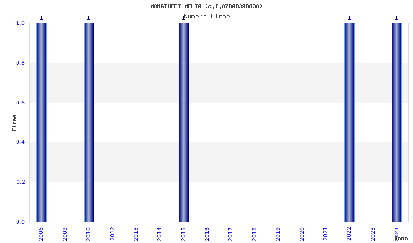 | Anno | Firme | Importi | Media | Naz. | Reg. | Prov. | Comu. |