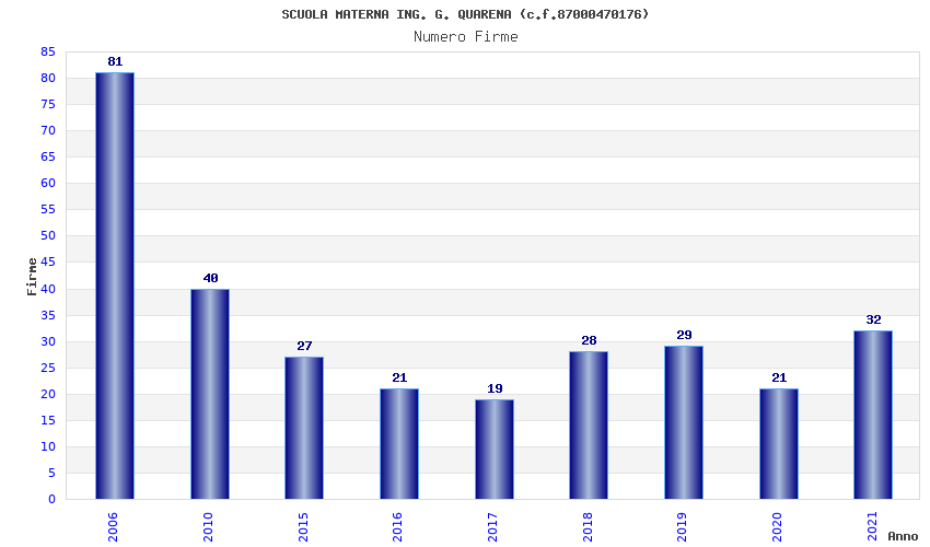 | Anno | Firme | Importi | Media | Naz. | Reg. | Prov. | Comu. |