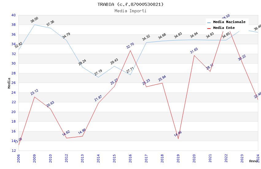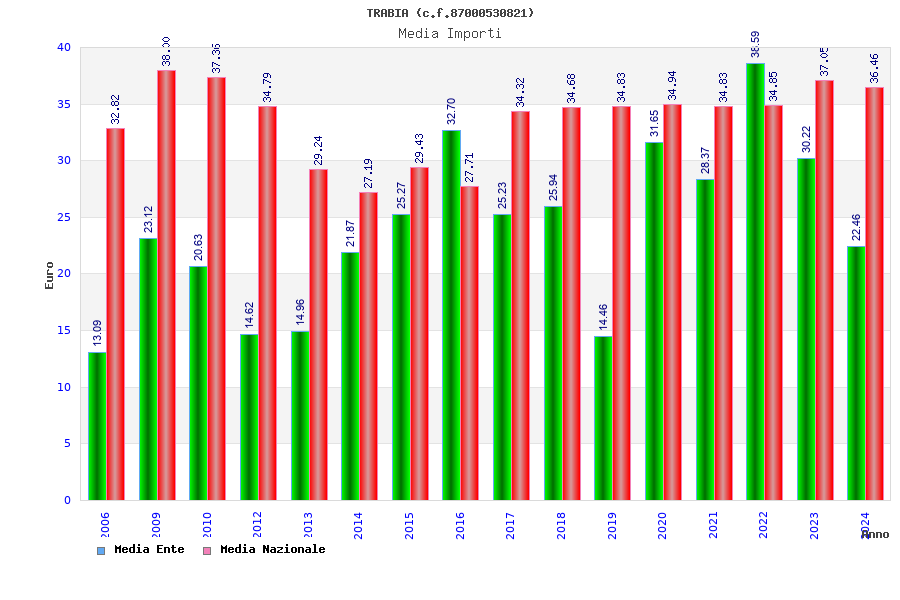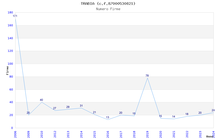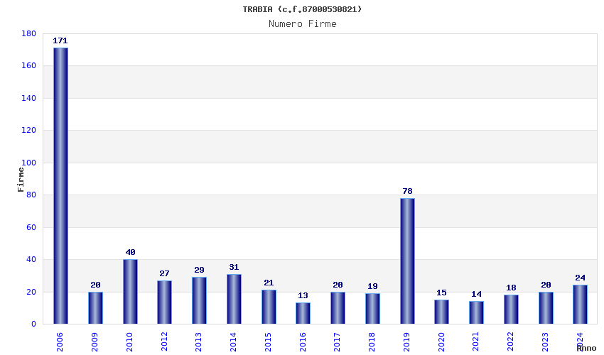 | Anno | Firme | Importi | Media | Naz. | Reg. | Prov. | Comu. |
