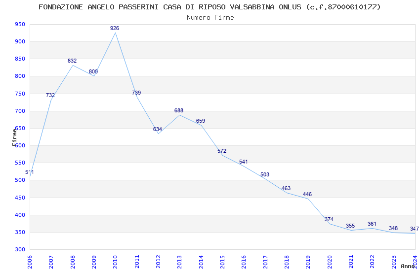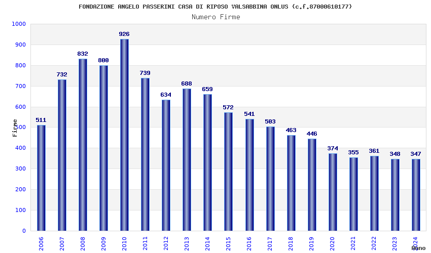 | Anno | Firme | Importi | Media | Naz. | Reg. | Prov. | Comu. |