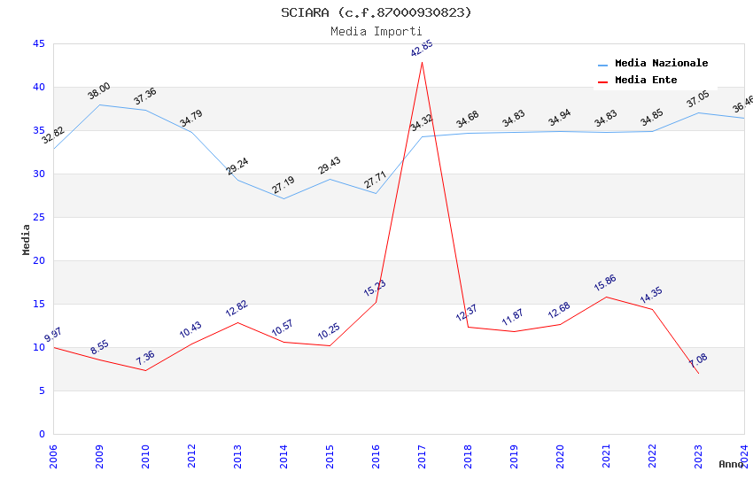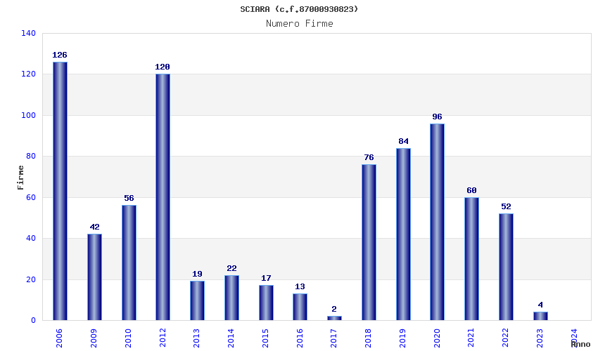 | Anno | Firme | Importi | Media | Naz. | Reg. | Prov. | Comu. |