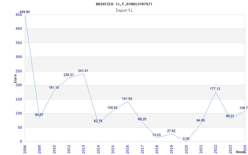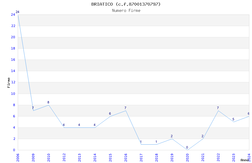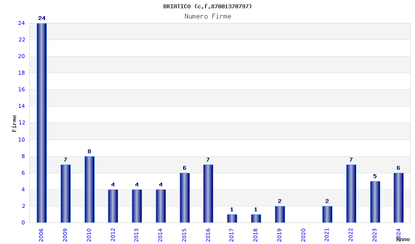 | Anno | Firme | Importi | Media | Naz. | Reg. | Prov. | Comu. |
